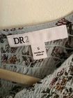 DR2 Ruffle Sleeve Light blue Floral Blouse - Size S. This is a lightweight, ruffle sleeved shirt with smocking. Great for any occasion and especially good in warmer weather. Main color is light blue with a small flower pattern and dots that have a little sparkle, as an overall pattern. No rips, holes, or stains. Tried to get a good photos of the flutter sleeve- it is so light and airy. Love this shirt! Photos of shirt hanging are against a cream colored wall. View all photos as they are part of the description. Thanks for taking a look at this item! Have a great day. Let me know if you have any questions. We appreciate your support of our small shop! We don't accept returns. As we don't accept returns, we don't pay for return shipping of items. We do our best to provide quality items for your purchase. Thank you for taking a look at this item. Have a great day!