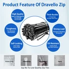 DRAVELLO Nylon Zip Ties, Black, 8 Inches, 100PCS Brand Vision DRAVELLO is dedicated to innovation and excellence, offering high-performance, versatile nylon zip ties. Exceptional Quality DRAVELLO zip ties provide outstanding UV resistance and chemical durability, ensuring excellent performance in harsh environments and guaranteeing your safety. Superior Tensile Strength Each zip tie has a tensile strength of 40 lbs (18.1 kg), significantly higher than standard products. The 0.15-inch (approximately 0.4 cm) width design offers enhanced sturdiness and stability for various applications. Self-Locking Design DRAVELLO zip ties feature an easy-to-use self-locking mechanism, ensuring quick and secure fastening. The integrated structure enhances durability and consistency, simplifying your tasks. Versatile Applications Ideal for organizing electronic cables, securing household items, or outdoor repairs, DRAVELLO zip ties are the perfect solution. The 8-inch (20.3 cm) length is great for managing cables and keeping spaces tidy, as well as for gardening and hanging items. Warranty DRAVELLO offers a full refund for any quality issues within the warranty period, ensuring a worry-free purchase. Usage Tips 1.Keep out of reach of children. 2.Store sealed to extend lifespan. 3.Use within the recommended temperature and tensile strength range. Choose DRAVELLO for quality and service that exceed expectations, making every use a pleasant experience. 【Versatile 8-Inch Zip Ties】: 0.14 inch standard size, 40 lbs tensile strength, 100 pack, strong and flexible zip ties suitable for various applications. 【High-Quality Material】: Made from Industrial-strength Nylon66, withstand temperatures from -40℉ to 185℉. weatherproof, UV-resistant, Features strong load ability, anti-aging and built for high toughness and durability. 【Powerful Self-Locking Design】: Clear teeth grooves provide a firm grip, and the self-locking mechanism ensures a secure hold, preventing accidental release. 【Wide Applications】: Widely used in home, office, or garden use. Perfect for cable management, gardening, garage organization, decoration, DIY projects, and temporary repairs. 【Cost-Effective and Great Value】: A high-quality product with excellent craftsmanship. DRAVELLO zip ties are designed for ease of use and outstanding durability, ensuring a superior user experience.