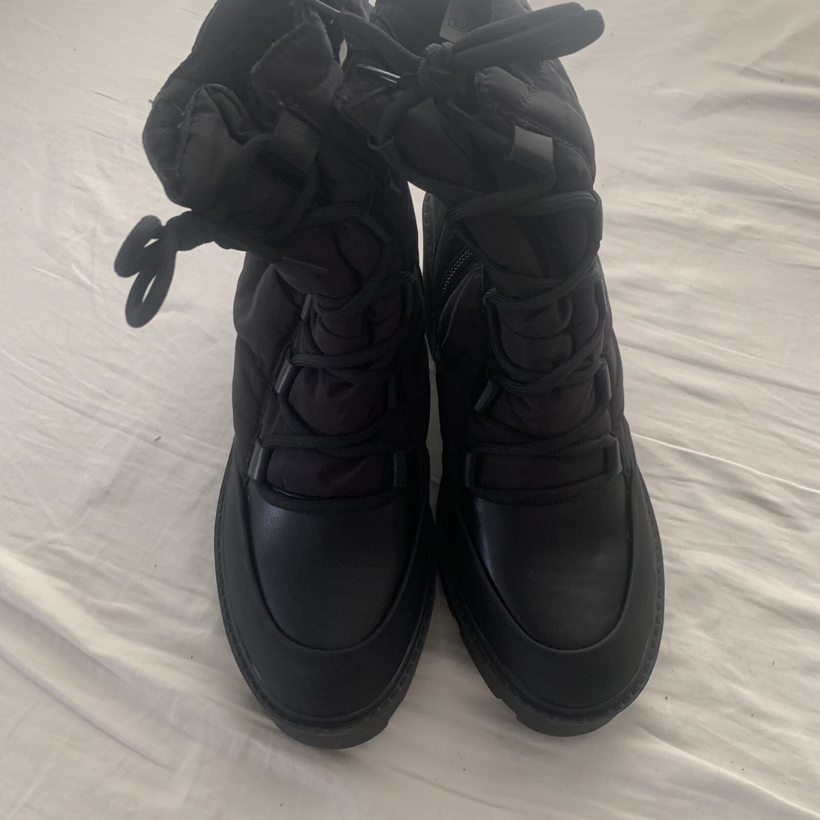 DREAM PAIRS Women's Platform Chelsea Combat Boots Lace Up Lug Sole Ankle Booties. Condition is New with box. The box does have some damage to it.
