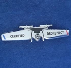 What a great looking CERTIFIED DRONE PILOT BLADE WING PIN, Item #1501. The pin features a stunning design for detail, color and silver color plated finish. Perfect to wear on your uniform or a gift for that person recently hired, promoted, or retired. This pin is a must have for the Certified Drone Operator Pilot. Get your pilot wing pin today and wear it with pride! Description: 2" width X 1/2" height in size Imitation cloisonne, hard enameled, polished, zinc alloy metal pin Silver (nickel) plated finish 1.8 mm thickness Two posts with clutch Pin individually poly bagged Packaged inside a bubble wrap envelope for extra care and shipped by USPS Ground Advantage Please visit our webstore at Pin Headquarters.com for more pins Must be a Certified Drone Pilot to wear or display insignia. Note: This pin was designed and manufactured by Pin Headquarters.com