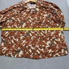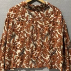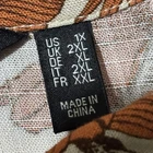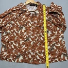 The DU JOUR*VTG* Shirt for women in Plus Size 1X is a versatile and stylish piece perfect for various occasions such as travel, casual wear, workwear, or business meetings. This shacket top features a collared neckline, button closure, and large ivory buttons with a safari leaf design. Made from a blended fabric of rayon and linen, this lightweight and packable top is ideal for all seasons and offers a classic fit with a cropped style. The shirt also includes large chest pockets and a playful giraffe accent, adding a touch of nature and exploration to your wardrobe. Perfect for the fashion-forward woman looking for a trendy and comfortable top. AS IS, No Flaws - Measurements show 24" Pit to pit, and 23" Length