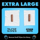 DUDE Wipes Flushable Wipes - 3 Pack 144 Wipes - Unscented Extra-Large Product Description: BILLIONS OF BUTTS WIPED: We make flushable wipes-billions of 'em. We started this hole revolution against toilet paper from our apartment and now wipe over 1.5 billion butts every year. So join us. You'll have never felt so fresh after that morning coffee EXTRA LARGE FLUSHABLE WIPES: When it comes to flushable wipes, size matters. And we're big. Up to 35% larger than the other guys. Because nobody wants a little wipe after a big burrito FLUSHABLE & 100% PLANT SOURCED FIBERS: Our flushable wipes are made with plastic free and plant sourced fibers. Unlike baby wipes, DUDE Wipes are sewer and septic-safe and begin to break down when flushed. Say goodbye to toilet paper and say hello to DUDE flushable wet wipes for the whole family BEST CLEAN PANTS DOWN: Made with 99% water and plant-based ingredients, DUDE wipes are unscented, hypoallergenic, alcohol-free, and paraben-free. They're also soaked with Aloe Vera and Vitamin E to protect your most sensitive skin and DUDE regions from irritation WET BEATS DRY: C'mon, you're better than that scratchy sandpaper. We promise once you try DUDE Wipes you'll never go back. Designed for a clean, more refreshing feeling than toilet paper, our plush wet wipes come in sleek dispenser packs that fit perfectly on your throne