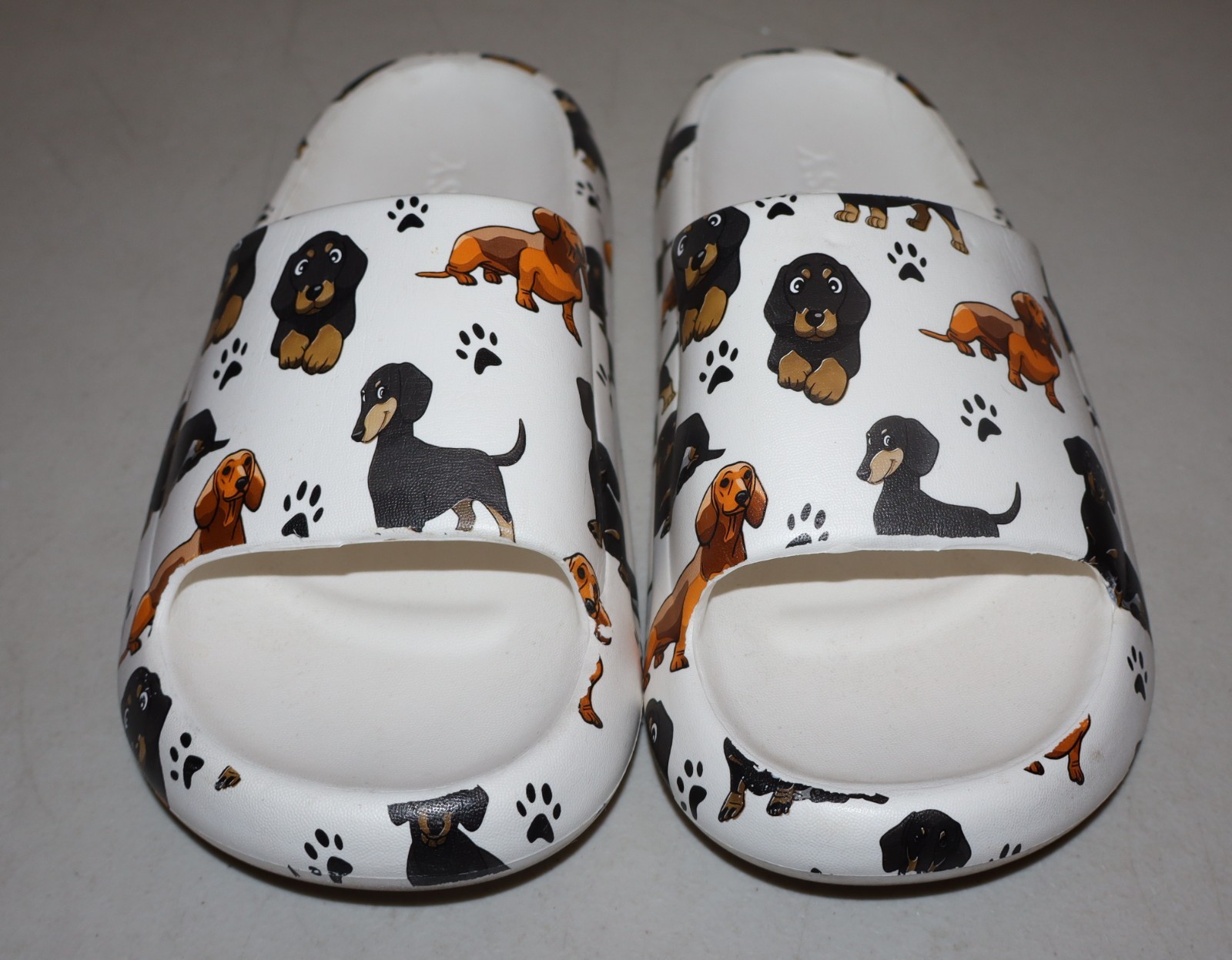 The Dachshund Sausage Dog Slip-on Sandals in size 40-41 by COSY are a fun and stylish choice for women who love dogs. These multicolor sandals feature a slip-on closure for easy wear and a synthetic upper material for durability. The slip-on style and dog theme make them a playful and comfortable option for casual wear. Perfect for adding a touch of whimsy to any outfit, these sandals are a cute and practical choice for any dog lover.