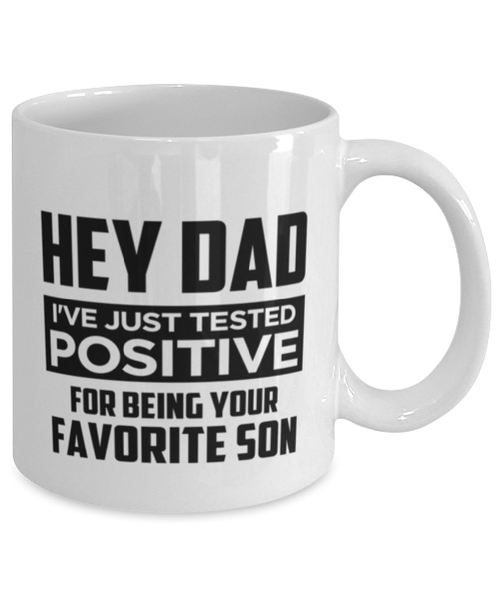 Dad Mug From Son Tested Positive Fathers Day Coffee Cup For Dad Son To Dad Mug Product Details.. This high quality 11oz. ceramic white mug has a premium hard coat that provides crisp and vibrant color reproduction sure to last for years. Perfect for all hot & cold beverages. The highest quality printing possible is used. It will never fade no matter how many times you wash it. Material: 100% Ceramic. Print both sides. Dishwasher and Microwave Safe. High Gloss + Premium White Finish. Printed in the U.S.A. Personalized & Custom. We support personalized and custom mug to add custom, when placing an order, you can add notes to the "order note" in shipping address section. Also you can contact us directly via message. Shipping Info. Ready to ship in 1 to 2 business days, All products are made-to-order and proudly printed in the United States. Shipped by USPS and DHL, You will receive your order in 5-7 days. Replace & Refund. All products are defective during shipping broken, chipped will be replaced free of charge. You are not satisfied with the product, we will refund 100% money to you. If any other issues arise, please do not hesitate to message, we would be more than happy to assist you.