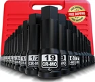 Dados De Impacto Juego De Llaves De Vaso De Impacto Profundo De 1/2" Fabricado en acero al cromo molibdeno (CR-MO) de alta resistencia, después del tratamiento térmico y la forja, tiene una gran dureza y buena tenacidad. El acabado con recubrimiento en polvo negro evita que el zócalo de la punta Allen se oxide y es resistente a la corrosión, lo que aumenta la cantidad de usos. Láser de doble cara, el frente es la palabra LOGO y el reverso es la marca de escala, alto contraste, láser permanente y fácil de leer, incluso con poca luz. Juego de 20 dados de impacto Allen de 1/2" con punta de destornillador. Medidas métricas y SAE: 5 mm, 6 mm, 8 mm, 10 mm, 12 mm, 14 mm, 16 mm, 17 mm, 18 mm, 19 mm. 1/4", 9/32", 5/16", 3/8", 7/16", 1/2", 9/16", 5/8", 11/16", 3/4" Más competente para trabajar en un espacio estrecho, viene con un estuche de almacenamiento moldeado por soplado de alta resistencia. SHIPPING: We offer FREE shipping on all orders! We ship within Three business days of payment, usually sooner. We use a selection of shipping services such as UPS, FedEx, USPS etc. We only ship to the lower 48 states, no APO/FPO addresses or PO Boxes allowed. Local pickups and combined shipping options are not provided at this time. PAYMENT: We accept payment by any of the following methods: PayPal Please pay as soon as possible after winning an auction, as that will allow us to post your item to you sooner! FEEDBACK: Customer satisfaction is very important to us. If you have any problem with your order, please contact us and we will do our best to make you satisfied. Thank you for shopping with us!