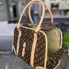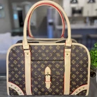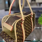 About this item Built with great quality and attention to detail. Inspired by canvas print, this carrier features a fun twist on the pattern while exciting the same senses. Cozy and comfy for your pooch, convenient for daily travel and far ways trips. TSA approved. Broadway carrier - Breathable, designed for breathability. Large front and side open mesh allow air to flow easily and your dog to breathe comfortably in the carrier. Airline approved - Approved by TSA as a compliant soft-sided carrier to take you puppy on board. Fits snuggly under airline seating letting your pup sit comfortably to their destination Easy to clean - Keep your carrier clean as new with ease. Use a damp wash cloth to wipe away any stain on the carrier’s exterior. With high quality material that is already stain-resistant keeping your bag clean as new is a breeze Made with quality - Extra strong zippers, handles and attachments. Every detail of this bag is meticulous and designed to last. From gold accents that don’t fade, button snaps that clasp shut, quality stitching that don’t leave loose threads Safety latch - Secure your pooch in the carrier with the built-in safety attachment. It hooks loosely on the collar, making sure they are secured to the bag while being able to move and turn comfortably Weight limit - Ideal for dogs 5-10 pounds. The carrier can fit dogs over 10 pounds but we recommend this limit to give them room to sit, lay or turn around comfortably in the carrier Dimension: 16" L x 8" W x 12" H (Ideal weight: 5-12 lbs) Is it Airline Approved? Yes, this carrier is a TSA approved soft-sided pet carrier. What is it made from? The interior is made from polyester with leatherette on the outside, it's 100% non-toxic. How do I clean it when dirty? Do not machine wash. Use a damp cloth to wipe away spots or blemishes to preserve the it's longevity. ⭐️⭐️⭐️⭐️⭐️ Loved by pet moms (and dads) everywhere!