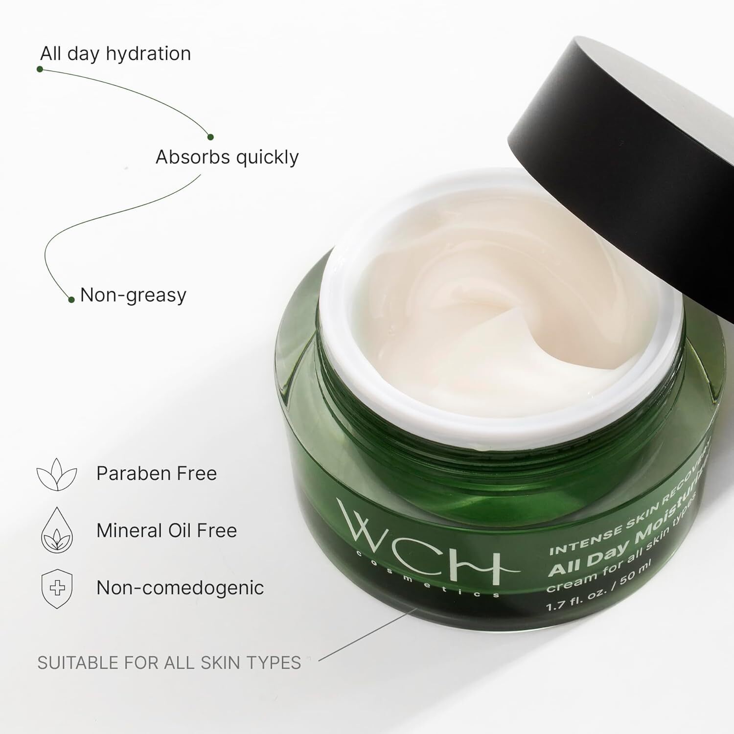 Free eBay listing template designed by dewiso.com All Day Moisturizer Face Cream with Ceramides and Peptides for Dry Skin – Anti-Aging Cream to Reduce Wrinkles, Redness, Irritation – Intense Skin Recovery – 1.7 fl. oz. / 50 ml FREE AND FAST SHIPPING! About this item Continuous 24 Hour Hydration: All Day Moisturizer Cream immerses your skin in a continuous wave of hydration, keeping it moisturized throughout the day for a radiant and supple complexion. Reduction of Redness and Irritation: Experience relief from visible redness and irritation as the cream's specially formulated blend works to soothe and calm the skin, promoting a more even and comfortable texture. The Cream is non-comedogenic, oil and paraben-free. Protective Barrier Against Pollution and UV Rays: Forming a protective barrier, the WCH Moisturizer Cream with Smartvector UV-CE inside helps combat the harmful effects of pollution and UV rays. Enhance your skin's resilience and face the day with confidence, knowing your skin is shielded and nourished. Exceptional Ingredients: Squalane is a natural moisturizer and skin softener that closely resembles the oils naturally present in our skin. Black Caviar Extract aids in enhancing skin elasticity, rejuvenating tired skin, bringing a touch of luxury to your skincare. Enriched with Ceramides, the Cream includes this essential lipid to fortify the skin's natural barrier. Directions for Use: Apply a small amount of Moisturizing Day Cream to your fingertips. Gently massage the cream into your skin using upward and outward otions. Allow the cream to absorb completely before applying makeup or sunblock. For best results, use daily as part of your morning skincare routine. Product We offer a 30-Day Return Policy on items which you are not completely satisfied with. You have the option for a full-refund or an exchange of the item. No returns are available on items shipped outside of the US . Shipping We offer Free Shipping to the US and ship within 2 business days of payment, usually sooner. We use UPS express shipping. That's why your products are usually delivered within 3 days . Contact We try our very best to make sure every customer is completely satisfied. If there's a problem , message us! We're happy to help. 24/7 live chat available.