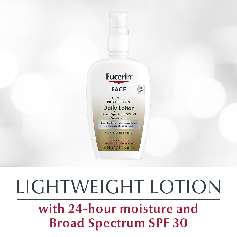 Store New Arrivals Add to Favorite View Feedback Contact Fast deliveries to the customer's home Quality customer service John Make the customers happy! Daily Protection Face Lotion with Broad Spectrum SPF 30 Sunscreen, Face Sunscreen Moisturizes and Helps Protect Sensitive, Dry Skin, Fragrance Free, 4 Fl Oz (Packaging May Vary) Description SUN PROTECTION: Enriched with zinc oxide, titanium dioxide and others sunscreens to provide broad spectrum UVA/UVB protection GENTLE: Gentle for sensitive skin NON-GREASY: Fast absorbing, nongreasy LONG-LASTING MOISTURE: Provides 24 hour moisture FREE OF: Fragrance-free, dye-free, Noncomedogenic, and gentle for sensitive skin INCLUDES: One (1) 4 fluid ounce bottle of Eucerin Daily Protection Face Lotion Broad Spectrum SPF 30 Sunscreen Eucerin’s Daily Protection Face Lotion is a dermatologist recommended, lightweight, broad spectrum SPF 30 moisturizer. Eucerin Daily Protection Face Lotion has UVA/UVB sunscreens, including zinc oxide and titanium dioxide which helps defend against sunburn and long-term sun damage. In addition, it provides 24 hour moisture, is non-comedogenic and is clinically proven to be gentle on sensitive skin. Item model number BEIERSDORF704726 Number of Items 1 Sun Protection Factor 30 Sun Protection Factor (SPF) Product Dimensions 2.6 x 1.14 x 6.1 inches; 7.05 ounces Scent Unscented Product Benefits Sun Protection Item Weight 200 Grams Is Discontinued By Manufacturer No Size 4 Fl Oz (Pack of 1) ABOUT US We offer the best prices around on high quality products. Our E-store includes media such as books, movies, music and games while offering electronics, toys, sporting apparel, clothing, tools, general home, garden items and more. SHIPPING We are always working hard to ensure your package arrives as soon as possible. Please understand that some factors like weather, high postal traffic, and the performance of shipping companies are outside of our control. We offer free shipping to the lower 48 states and ship within 2 business days of payment, usually sooner. We do not accept P.O. Boxes. Please provide a physical address. For shipping outside of the continental USA, we only use eBay's Global Shipping Program. The item is shipped to KY and then sent to the rest of the world. International customers are responsible for all duties and taxes. Continue to 'check out' to calculate costs for shipping the item to your country. Messages regarding eBay's Global Shipping Program MUST be directed at eBay EXCLUSIVELY. RETURNS We offer a 30-Day Return Policy on items in which you are not completely satisfied with. You have the option of a full-refund or an exchange of the item. No returns are available on items shipped outside of the USA PAYMENT We accept PayPal. CONTACT US This page content is yet to come Please ad us to your favorite seller and visit again later Thank You CUSTOMER SATISFACTION We try our very best to make sure every customer is completely satisfied. If there's a problem, message us! We're happy to help. WE ACCEPT
