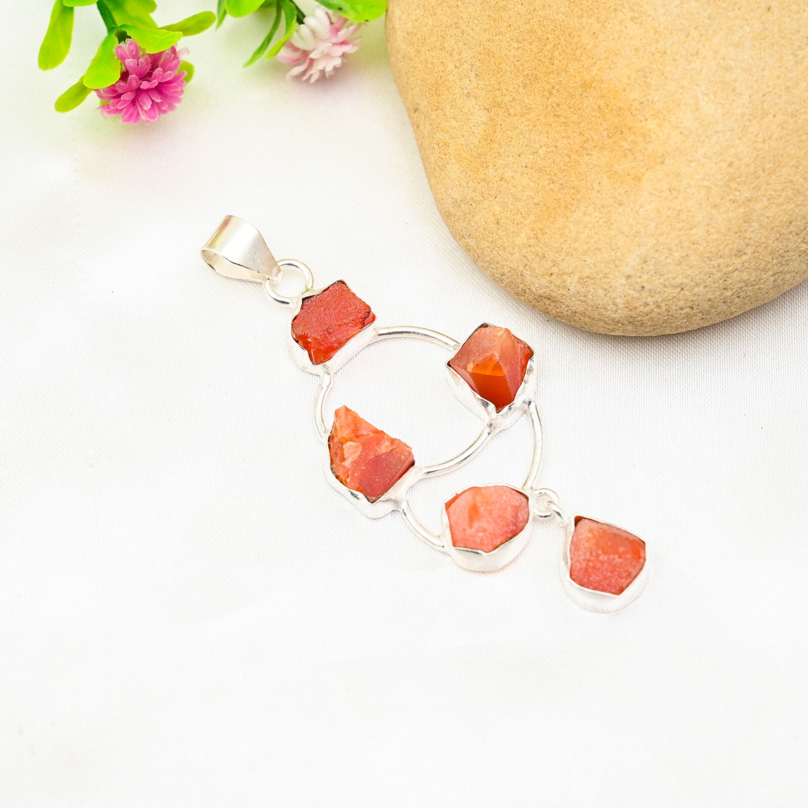 $ 7.4Raw Clear Quartz Pendant in 925 Sterling Silver Handmade Love Jewelry Gift
