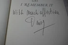 Daisy M. Soros SIGNED As I Remember It 2007 Original Hardcover Book Measures approximately 6 1/4" x 9 1/4". 219 Pages. Front cover has some marks and discoloration, likely from storage. Edges of the dust jacket also have curling and creasing. Interior of book looks good with minor wear to include possible turned corners, marks and creasing from handling. There is a ding to the top right corner of the front cover. Please see photos for more information on condition and ask any questions you may have.