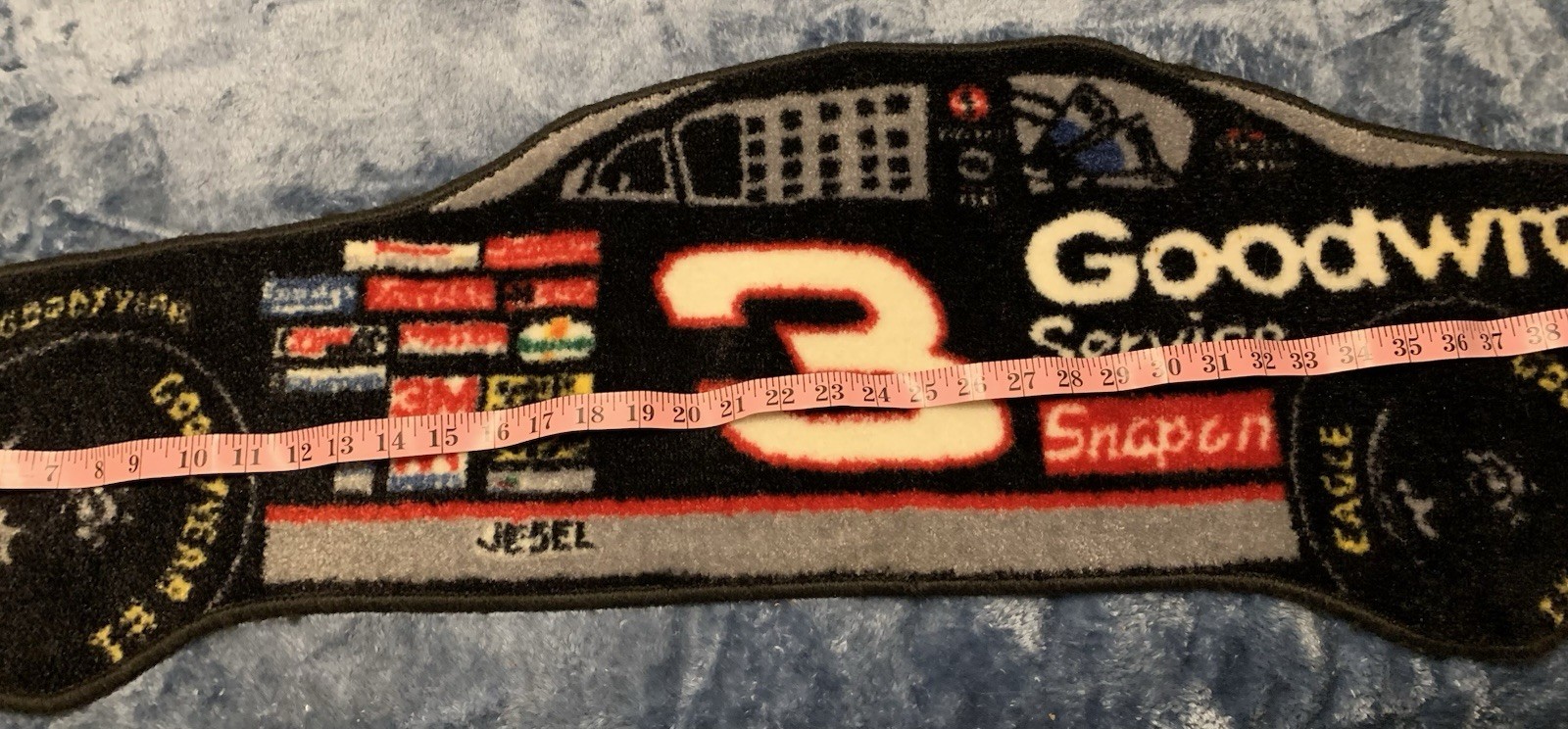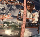 The Dale Earnhardt Hood and Car Rug Set is an officially licensed product featuring the legendary driver's car and name. Made by Fanatics, this unisex adult-sized rug is a perfect addition for any NASCAR fan's collection. With a design inspired by Earnhardt Ganassi Racing, this rug showcases the iconic driver and team, making it a must-have for any auto racing enthusiast. The metal hood wall decor goes great for the ultimate racing fan