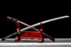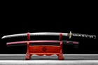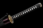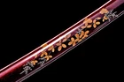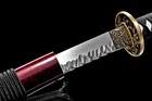 Product Parameter: Name: 葵 喜 国 助 Material: Folded 1095 steel 15 times(32768 layers),Damascus steel,百炼钢 Overall: 103cm/40.6" Blade: 70cm/27.5'' Handle: 26 cm/10.24'' Widdth: 3.2 cm/1.26'' Thickness: 0.7cm/0.28'' Blade HRC(hardness): 58 Blade Color: No Color ! Bo-hi: Yes, with blood groove Ito&Sageo: Black Japanese synthetic silk Samegawa: White rayskin Tsuba/Fuchi/Kashira/Habaki/Seppa: Brass Saya: Dark red wood scabbard with delicate leaves design Tang(nakago): Full tang ( 2 bamboo menuki vertically fixed handle, very firm) Package: 1 sword + 1 random bag Craft: Hand folded and forged, water quenching treatment, Full Tang, Hand-polishing, Unique stone carving pattern etc. * The steel we use is not the normal steel with the truck or cars or other life electrics, the steel use for the blade contents much more carbon and the purity can not be comparable . * It's a functinonal sword. After test, it can cut bamboo, A4 paper and water bottles,etc . * The stand is not include ! Additional Service About us Sword Noun Explananation Delivery details Sword maintenance Additional Service It's free for engraving English words, Chinese Characters and Japanese Kanji , etc. You need pay extral $20-30 for engraving patterns. Sharpness Most of our blades are sharp. We can also make the blade unsharpened for free if you require. Matching Swords Set If you buy one katana, we can make a matching Wakizashi or Tanto for you. The price varies from different swords. Please contact us if you need make custom matching set. About us We have our own sword-casting factory. The factory is located in Longquan, a small town with a long history of sword-casting in China. Most of the famous Swords in China are made there. Rich raw materials, skilled technology, traditional sword casting technology from generation to generation. Manual production really takes a lot of time. We will prepare most products in advance ,and arrange delivery within about a week. However, sometimes the delivery time is delayed due to weather or raw materials,etc. we hope to get your understanding. Feel free to contact us to inquire about the status of your order. Each handmade sword is unique. Our swords are great for gifts or for your own collection. Our swordsmithing master makes every sword attentively, hope you can feel our sincerity. We will also give you the best customer service, any questions please feel free to contact us. Sword Noun Explananation Quenching After the blade has been shaped, the sword would be quenched. We quench our swords in either water or oil. Water quenching produces a tougher edge which can also be hardened further more using clay. Blades quenched in oil are still considerably hardened and do have superior flexibility compared to a water quenched blade. Folded Steel : In the forging process , the most useful process is the folding, where the metals are forge welded, folded, and welded again, as many as 124 times(15 times is the best). The folding removes impurities and helps even out the carbon content, while the alternating layers combine hardness with ductility to greatly enhance the toughness. The less impurities, the harder and sharper the blade will be. We have done cutting tests on the blades. it can cut bamboo(young bamboo tree), grass mattings and slice paper(The blade should be tilted at 45 degrees). Clay tempered : To maximize both the cutting edge and the resilience of the sword spine, a technique of differential heat-treatment is used.The sword is painted with layers of clay before heating, providing a thin layer or none at all on the edge of the sword, ensuring quick cooling to maximize the hardening for the edge.A thicker layer of clay is applied to the rest of the blade,causing slower cooling.This creates softer,more resilient steel, allowing the blade to absorb shock without breaking. About 1095 carbon steel : The best quality of high carbon steel is at 1095, the carbon content was 1.03%, and the element contains a small amount of chromium, molybdenum, vanadium, after heat treatment can reach HRc58-60 hardness, toughness is very good, but not resistant to rust, more be applied to traditional european-style hunting knife, large cutting knife and military dao. Such as the United States during world war ii "KA - BAR" saber is in 1095 as the blade material. Kobuse : The vast majority of modern katana and wakizashi are the maru type which is the most basic, with the entire sword being composed of a single steel. The kobuse type is made using two steels, which are called hagane (edge steel) and shingane (core steel). Steel of different materials is forged and welded together to hammer the basic shape of the sword. This allows the overall blade to have a higher toughness and absorb a lot of impact. Reducing the possibility of breaking or bending to some extent. Makes the blade not only has high hardness, but also has super toughness Delivery details a) Import duties, taxes and charges are not included in the item price or shipping charges . These charges are the buyer’s responsibility. b) If you do not receive the package, or the package is damaged during transportation. We'll take care of it. Please feel free to buy. c) If it is mentioned in the product description that the package includes the sword bag or sword holder , the style will be random. The sword holder or sword bag on the ebay picture is the props we use for shooting. If you really like a style, please contact us before buying. d) If you have any problem after recieve the package (wrong size, wrong style, etc.). We always provide you with the best after-sales service. Please give us a chance to help you before you give us a bad feedback . Thank you very much! Sword maintenance