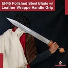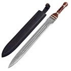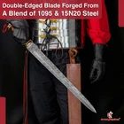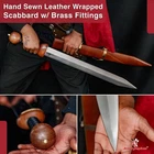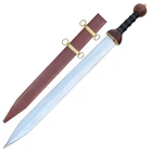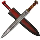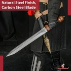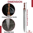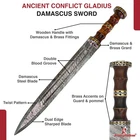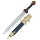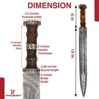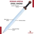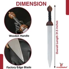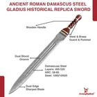 Specifications Overall Length: 29 Inches Blade Length: 23 Inches Blade Material: 440 Stainless Steel, Mirror polished finish Blade Style: Dagger Point Blade Thickness: 3.15 mm Handle Length: 6 Inches Handle Material: ABS Material with Features King Solomon Details 440 Stainless Steel Blade ABS Handle Material w/ Aluminum Gold Finish Rings Free Leather Wrapped Wood Scabbard With a mirror polished blade forged from 440 stainless steel and adorned with intricate laser etchings, this sword is well-representative of the famous biblical king of Israel renowned for his wisdom and who is a prominent figure in the three largest Abrahamic faiths-Judaism, Christianity and Islam. With an elaborate design draped in symbolism and constructed with appealing craftsmanship, the swords golden plated guard features kippah wearing Lions of Judah (representative of the Israelite tribe Solomon, his father David and Davids descendant Jesus of Nazareth all hailed from) on both ends of the quillons. The center of the crossguard features an inset with a Menorah on one side and an image of two figures carrying the sacred Arc of the Covenant into the great First Temple of Jerusalem built by Solomon on the reverse, both central images are positioned atop a Star of David. The handle is ringed with gold accents with a faux leather grip while the pommel has a large Star of David. The scabbards chafe and locket both showcase intricately etched designs, with the chafe displaying an ornate representation of the story of the Queen of Shebas visit with Solomon as an image of the queen herself is framed by her many gifts for the fabled king. Available in three different handle colors (Black, Blue and Red), each short sword also has an accompanying dagger. Perfect for display purposes, if you buy a sword, please make sure to buy the matching dagger to complete your set! The third (and last) king of the unified Kingdom of Israel whose glorious reign is widely regarded as the golden age of the state, Solomons wisdom and spirituality has been a guiding force for millennia. According to Jewish tradition, King Solomon personally authored three books of the Bible- the Book of Proverbs, Ecclesiastes and Song of Songs- with all three being considered classic examples of Wisdom Literature (a genre of literature common in the Ancient Near East characterized by sayings of wisdom intended to insight and wisdom about nature and reality) whose life lessons and guiding examples have long been an inspiration to many. A central figure in the three primary Abrahamic faiths- Judaism, Christianity and Islam- the influence of Solomon to this day touches the lives of over 54% of the worlds population. Type 1: Roman Invasion Gladius Specifications Overall Length: 29.25 inches Blade Length: 22.5 inches Blade Thickness: 4.3 mm Steel Composition: 1095/15N20 Damascus steel Handle: Ribbed Sheesham Wood, Brass components Description Experience the power and precision of the Roman Empire with the Roman Invasion Hand Forged Damascus Gladius Sword . This magnificent sword features a beautifully crafted Damascus steel blade with a unique pattern. The handle, made from ribbed Sheesham wood, is contoured for a secure and comfortable grip, enhanced by a brass guard and pommel. Affordable, functional, and aesthetically striking, this sword is a must-have addition to any collection. 2. Type 2: XV Apollinaris Firestorm Specifications Overall Length: 29.25 Inches Blade Length: 22.40 Inches (Double-Sided) Blade Steel: 1095/15N20 Damascus Alloy Blade Pattern: Firestorm Hardness (HRC): 58–60 Handle: Segmented Sheesham Wood, Damascus, and Brass Pommel: Damascus "Cranium Cracker" Description Wield the power of the legendary Legion XV Apollinaris! This Damascus Gladius Sword is a stunning custom replica featuring a Firestorm pattern blade, hand-forged from 1095/15N20 alloy steel (HRC 58-60). The hilt is segmented with Sheesham wood, Damascus, and brass, leading to a functional Damascus cranium cracker pommel. This sword is a magnificent testament to Roman might, perfect for the serious collector. 3. Type 3: Ancient Roman Replica Specifications Overall Length: 27.25 inches Blade Length: 18.75 inches Steel Layers: 400-520 Layers Hardness (HRC): 58–60 Handle: Rosewood, Pure Brass, and Steel inserts Blade Thickness: 3.85 mm Description Bring home a piece of history with this Ancient Roman Inspired Damascus Steel Gladius . The Gladius ruled close combat for centuries, and this expert replica features a blade forged from 1095/15N20 Damascus steel, folded over 400 times. The elegant Rosewood handle is accented with brass and steel, providing a sophisticated look and a secure grip. A masterpiece for any military history enthusiast. 4. Type 4: Ancient Conflict Short Sword Specifications Overall Length: 21.25 Inches Blade Length: 15 Inches Blade Thickness: 3.42 mm Handle Length: 6 Inches Handle Construction: Sheesham Wood, Brass, and Damascus Steel Description The Ancient Conflict Damascus Short Sword takes the iconic Roman Gladius style and gives it a stunning Damascus twist. At a compact 21.25 inches, this sword is highly collectible and easy to display. The blade is forged from layers of high carbon steel and 15N20, creating a gorgeous pattern. The hilt contrasts beautifully with Sheesham wood and hand-carved Damascus. A perfect addition to any medieval enthusiast's collection. 5. Type 5: Roman Arena Pompeii Gladius Specifications Overall Length: 29.5 Inches Blade Length: 22 Inches Handle Length: 4.75 Inches Blade Width: 2.1 Inches Guard Width: 2.75 Inches Blade Type: Double Sided, Safety Edge (Unsharpened) Materials: Steel, Wood, Leather, and Brass Description This magnificent 29.5-inch Roman Pompeii Gladius is a faithful replica of the famed sword wielded by Roman legions and gladiators. Featuring a steel blade with a safety edge, the sword includes an ergonomic, leather-wrapped wooden grip and a decorative brass-tipped pommel. It comes complete with a beautifully crafted