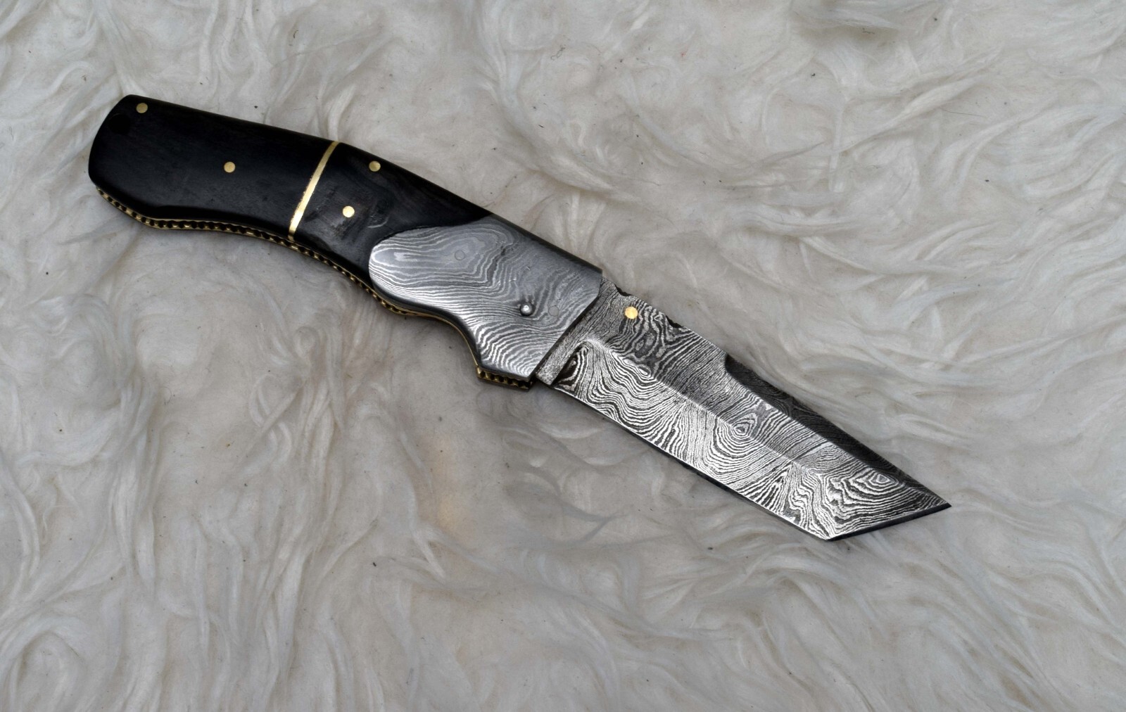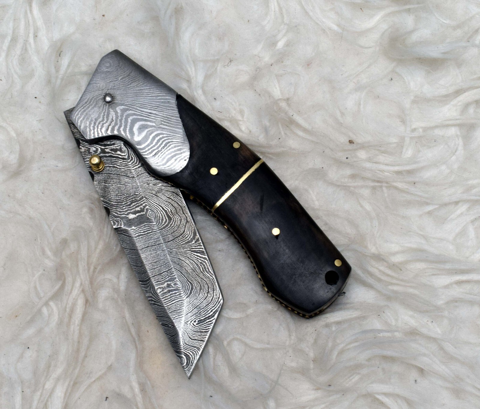 Damascus Steel Handmade Liner Lock Folding Pocket Knife for Camping Hunting H-1088