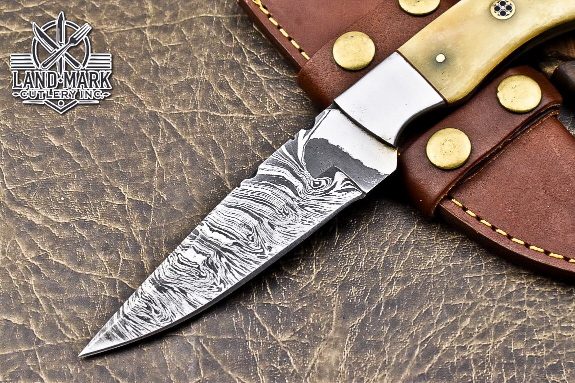 This knife is absolutely stunning! The Damascus steel blade is razor-sharp and holds its edge perfectly, while the bone and steel bolster handle gives it a classic, rugged feel. The craftsmanship is top-notch—you can tell it's handmade with care. It fits comfortably in hand, and the included leather sheath is a nice touch. Great for hunting or as a collector’s piece, and the shipping discount for multiple purchases is a sweet bonus. Really impressed with the quality!