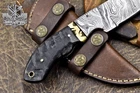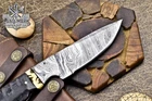 This Damascus steel hunting knife is a true work of art! The ram horn handle adds a rugged yet elegant touch, and the blade’s sharpness holds up incredibly well. The leather sheath fits perfectly, making it both functional and stunning. The craftsmanship is flawless—definitely worth every penny, especially with the combined shipping discount. A must-have for any outdoors enthusiast or collector!
