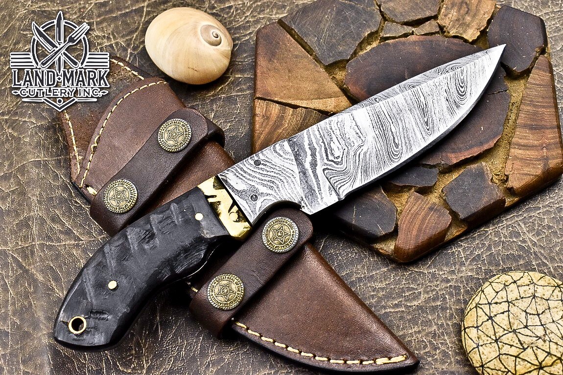 Custom Hand Made DAMASCUS STEEL HUNTING KNIFE WITH RAM HORN HANDLE We offer a shipping discount for More then one purchased . And discount will be apply on combine invoice, Discount will not apply on separate payment. ITEM DETAILS OVER ALL LENGTH 8.0 inches long (Approx) HANDLE LENGTH 4.0 inches long (Approx) BLADE LENGTH 4.0 inches long (Approx) BLADE HARDNESS 58-60 HRC Which Holds The Sharp Edge For Long Time. HANDLE RAM HORN COVER LEATHER SHEATH This Awesome custom made KNIFE has a nice hand forged with the combination of 4340 & 1080 steel. HOW OUR DAMASCUS IS MADE: All our Damascus is real and not just an acid etch. Damascus is a mixture of 1080HC and 4340 nickel carbon. You heat them up together and then fold the bar over and over to get the desired layers, ours are 396 layers. Then you burn the blade in acid, and it turns the nickel satin color and the high carbon turns blackish gray. This is how the layers are exposed to show the layers of the new steel created coined "Damascus". All Damascus is acid etched to show the layers. If you high polish the metal it will be shinny satin like all steels. Only after you burn the sides of the blade with acid do you see the layers of the two steels. Makes sense? After we make our knives we high polish the handles and put an edge on the blade. The high polishing buffs off the acid burned layer of the handle, and the blade edge is sharpened and the acid burned edge becomes satin. You can re-burn the tang of the blade near the handles and the edge of the blade and it will show the layers once more. All our knives are hand made, durable and unique ***** YOU WILL RECEIVED THE SAME KNIFE Qality Standards Our Damascus blades are made from high quality non-stainless steels which rival or exceed any Damascus blade made from the 10 series with 4340. Our Damascus combination has taken years to perfect and has been tested under a variety of application which will offer professional performance in categories of toughness, strength (lateral stress) and edge honing and holding ability. In a 5 spot Rockwell test our blades will average near or close to 58 which offers a perfect balances between its toughness and strength.Our blades due to carbon content need to be regularly treated with wax and/or 3 in 1 oil to maintain its superior quality. Questions if you have any question feel free to send us message we aim to answer all questions within 24 hours Feedback If you are not satisfied with our service please contact us before leaving any negative or natural feedback. We will resolve all issues as quickly as possible. Disclaimer We are not responsible for any injuries associated with the use of our tools. Our products are intended for legal use only by responsible buyers. Therefore, we will not sell our products to anyone under the age of 18. Before bidding please check your country laws as some countries Custom don't allow this. If your purchase is held by Custom Authorities in your country/State we will not be responsible for that and no refund will be issued Shipping We offer a 20% shipping discount for More then one purchased . And discount will be apply on combine invoice, Discount will not apply on separate payment We ship within 24 hours after receiving complete payment but this can be delayed due to week ends or Governments and Religious Festivals . . This is beyond our control and we apologize for this inconvenience. Precautions Our Tools are very sharp so open and use them very carefully We are not responsible for any injuries associated with the use of our tools Tips to Care knife 1. NEVER STORE YOUR KNIFE FOR LONG TIME IN LEATHER SHEATH. 2. LEATHER CAN ABSORB WATER, WHICH WILL RUST THE KNIFE. 3. ALWAYS CLEAN THE BLADE AFTER USING WITH OIL OR WAX