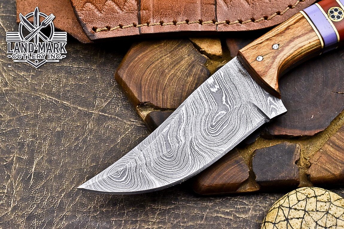 Damascus Steel Hunting Skinner Knife with Resin Olive Wood Handle