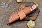 Custom Hand Made DAMASCUS STEEL HUNTING KNIFE WITH OLIVE WOOD HANDLE We offer a shipping discount for More then one purchased . And discount will be apply on combine invoice, Discount will not apply on separate payment. ITEM DETAILS OVER ALL LENGTH 8.0 inches long (Approx) HANDLE LENGTH 4.0 inches long (Approx) BLADE LENGTH 4.0 inches long (Approx) BLADE HARDNESS 58-60 HRC Which Holds The Sharp Edge For Long Time. HANDLE OLIVE WOOD COVER LEATHER SHEATH This Awesome custom made KNIFE has a nice hand forged with the combination of 4340 & 1080 steel. HOW OUR DAMASCUS IS MADE: All our Damascus is real and not just an acid etch. Damascus is a mixture of 1080HC and 4340 nickel carbon. You heat them up together and then fold the bar over and over to get the desired layers, ours are 396 layers. Then you burn the blade in acid, and it turns the nickel satin color and the high carbon turns blackish gray. This is how the layers are exposed to show the layers of the new steel created coined "Damascus". All Damascus is acid etched to show the layers. If you high polish the metal it will be shinny satin like all steels. Only after you burn the sides of the blade with acid do you see the layers of the two steels. Makes sense? After we make our knives we high polish the handles and put an edge on the blade. The high polishing buffs off the acid burned layer of the handle, and the blade edge is sharpened and the acid burned edge becomes satin. You can re-burn the tang of the blade near the handles and the edge of the blade and it will show the layers once more. All our knives are hand made, durable and unique ***** YOU WILL RECEIVED THE SAME KNIFE Qality Standards Our Damascus blades are made from high quality non-stainless steels which rival or exceed any Damascus blade made from the 10 series with 4340. Our Damascus combination has taken years to perfect and has been tested under a variety of application which will offer professional performance in categories of toughness, strength (lateral stress) and edge honing and holding ability. In a 5 spot Rockwell test our blades will average near or close to 58 which offers a perfect balances between its toughness and strength.Our blades due to carbon content need to be regularly treated with wax and/or 3 in 1 oil to maintain its superior quality. Questions if you have any question feel free to send us message we aim to answer all questions within 24 hours Feedback If you are not satisfied with our service please contact us before leaving any negative or natural feedback. We will resolve all issues as quickly as possible. Disclaimer We are not responsible for any injuries associated with the use of our tools. Our products are intended for legal use only by responsible buyers. Therefore, we will not sell our products to anyone under the age of 18. Before bidding please check your country laws as some countries Custom don't allow this. If your purchase is held by Custom Authorities in your country/State we will not be responsible for that and no refund will be issued Shipping We offer a 20% shipping discount for More then one purchased . And discount will be apply on combine invoice, Discount will not apply on separate payment We ship within 24 hours after receiving complete payment but this can be delayed due to week ends or Governments and Religious Festivals . . This is beyond our control and we apologize for this inconvenience. Precautions Our Tools are very sharp so open and use them very carefully We are not responsible for any injuries associated with the use of our tools Tips to Care knife 1. NEVER STORE YOUR KNIFE FOR LONG TIME IN LEATHER SHEATH. 2. LEATHER CAN ABSORB WATER, WHICH WILL RUST THE KNIFE. 3. ALWAYS CLEAN THE BLADE AFTER USING WITH OIL OR WAX