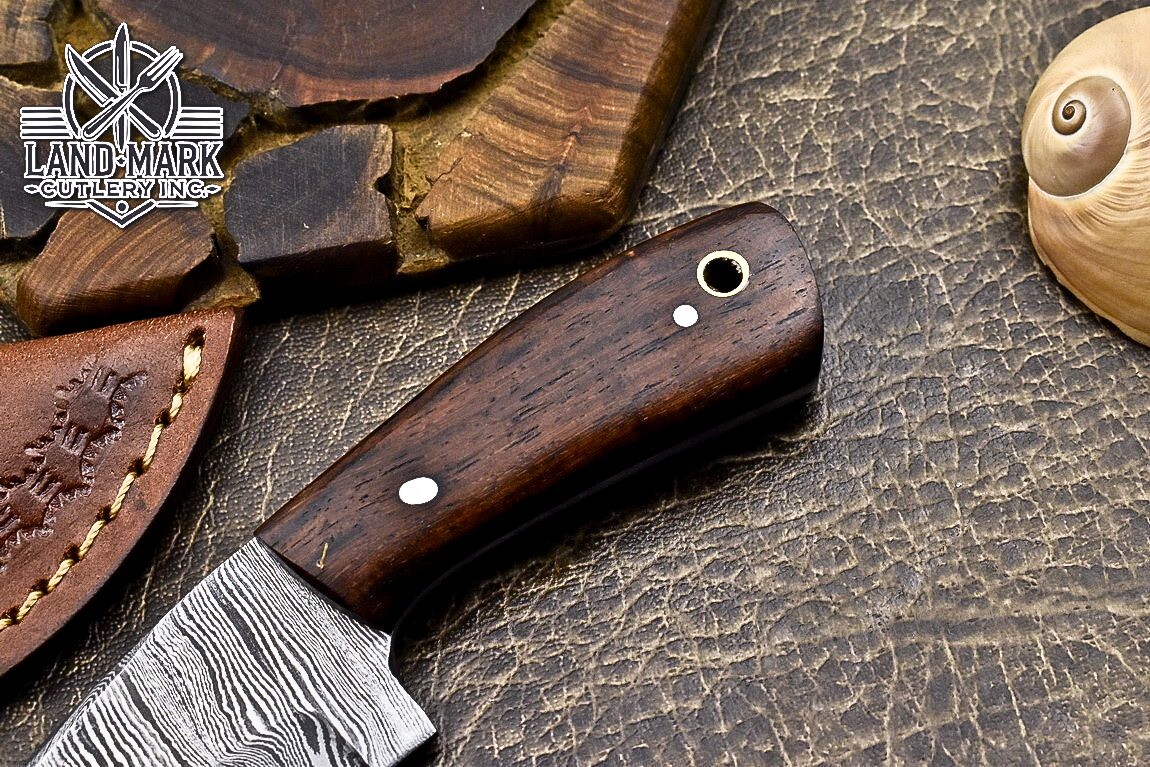 Custom Hand Made DAMASCUS STEEL HUNTING KNIFE WITH ROSE WOOD HANDLE We offer a shipping discount for More then one purchased . And discount will be apply on combine invoice, Discount will not apply on separate payment. ITEM DETAILS OVER ALL LENGTH 3.0 inches long (Approx) HANDLE LENGTH 1.5 inches long (Approx) BLADE LENGTH 1.5 inches long (Approx) BLADE HARDNESS 58-60 HRC Which Holds The Sharp Edge For Long Time. HANDLE ROSE WOOD COVER LEATHER SHEATH This Awesome custom made KNIFE has a nice hand forged with the combination of 4340 & 1080 steel. HOW OUR DAMASCUS IS MADE: All our Damascus is real and not just an acid etch. Damascus is a mixture of 1080HC and 4340 nickel carbon. You heat them up together and then fold the bar over and over to get the desired layers, ours are 396 layers. Then you burn the blade in acid, and it turns the nickel satin color and the high carbon turns blackish gray. This is how the layers are exposed to show the layers of the new steel created coined "Damascus". All Damascus is acid etched to show the layers. If you high polish the metal it will be shinny satin like all steels. Only after you burn the sides of the blade with acid do you see the layers of the two steels. Makes sense? After we make our knives we high polish the handles and put an edge on the blade. The high polishing buffs off the acid burned layer of the handle, and the blade edge is sharpened and the acid burned edge becomes satin. You can re-burn the tang of the blade near the handles and the edge of the blade and it will show the layers once more. All our knives are hand made, durable and unique ***** YOU WILL RECEIVED THE SAME KNIFE Qality Standards Our Damascus blades are made from high quality non-stainless steels which rival or exceed any Damascus blade made from the 10 series with 4340. Our Damascus combination has taken years to perfect and has been tested under a variety of application which will offer professional performance in categories of toughness, strength (lateral stress) and edge honing and holding ability. In a 5 spot Rockwell test our blades will average near or close to 58 which offers a perfect balances between its toughness and strength.Our blades due to carbon content need to be regularly treated with wax and/or 3 in 1 oil to maintain its superior quality. Questions if you have any question feel free to send us message we aim to answer all questions within 24 hours Feedback If you are not satisfied with our service please contact us before leaving any negative or natural feedback. We will resolve all issues as quickly as possible. Disclaimer We are not responsible for any injuries associated with the use of our tools. Our products are intended for legal use only by responsible buyers. Therefore, we will not sell our products to anyone under the age of 18. Before bidding please check your country laws as some countries Custom don't allow this. If your purchase is held by Custom Authorities in your country/State we will not be responsible for that and no refund will be issued Shipping We offer a 20% shipping discount for More then one purchased . And discount will be apply on combine invoice, Discount will not apply on separate payment We ship within 24 hours after receiving complete payment but this can be delayed due to week ends or Governments and Religious Festivals . . This is beyond our control and we apologize for this inconvenience. Precautions Our Tools are very sharp so open and use them very carefully We are not responsible for any injuries associated with the use of our tools Tips to Care knife 1. NEVER STORE YOUR KNIFE FOR LONG TIME IN LEATHER SHEATH. 2. LEATHER CAN ABSORB WATER, WHICH WILL RUST THE KNIFE. 3. ALWAYS CLEAN THE BLADE AFTER USING WITH OIL OR WAX