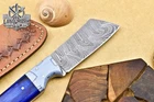 Custom Hand Made DAMASCUS STEEL HUNTING KNIFE WITH PAKKA WOOD HANDLE We offer a shipping discount for More then one purchased . And discount will be apply on combine invoice, Discount will not apply on separate payment. ITEM DETAILS OVER ALL LENGTH 3.0 inches long (Approx) HANDLE LENGTH 1.5 inches long (Approx) BLADE LENGTH 1.5 inches long (Approx) BLADE HARDNESS 58-60 HRC Which Holds The Sharp Edge For Long Time. HANDLE PAKKA WOOD COVER LEATHER SHEATH This Awesome custom made KNIFE has a nice hand forged with the combination of 4340 & 1080 steel. HOW OUR DAMASCUS IS MADE: All our Damascus is real and not just an acid etch. Damascus is a mixture of 1080HC and 4340 nickel carbon. You heat them up together and then fold the bar over and over to get the desired layers, ours are 396 layers. Then you burn the blade in acid, and it turns the nickel satin color and the high carbon turns blackish gray. This is how the layers are exposed to show the layers of the new steel created coined "Damascus". All Damascus is acid etched to show the layers. If you high polish the metal it will be shinny satin like all steels. Only after you burn the sides of the blade with acid do you see the layers of the two steels. Makes sense? After we make our knives we high polish the handles and put an edge on the blade. The high polishing buffs off the acid burned layer of the handle, and the blade edge is sharpened and the acid burned edge becomes satin. You can re-burn the tang of the blade near the handles and the edge of the blade and it will show the layers once more. All our knives are hand made, durable and unique ***** YOU WILL RECEIVED THE SAME KNIFE Qality Standards Our Damascus blades are made from high quality non-stainless steels which rival or exceed any Damascus blade made from the 10 series with 4340. Our Damascus combination has taken years to perfect and has been tested under a variety of application which will offer professional performance in categories of toughness, strength (lateral stress) and edge honing and holding ability. In a 5 spot Rockwell test our blades will average near or close to 58 which offers a perfect balances between its toughness and strength.Our blades due to carbon content need to be regularly treated with wax and/or 3 in 1 oil to maintain its superior quality. Questions if you have any question feel free to send us message we aim to answer all questions within 24 hours Feedback If you are not satisfied with our service please contact us before leaving any negative or natural feedback. We will resolve all issues as quickly as possible. Disclaimer We are not responsible for any injuries associated with the use of our tools. Our products are intended for legal use only by responsible buyers. Therefore, we will not sell our products to anyone under the age of 18. Before bidding please check your country laws as some countries Custom don't allow this. If your purchase is held by Custom Authorities in your country/State we will not be responsible for that and no refund will be issued Shipping We offer a 20% shipping discount for More then one purchased . And discount will be apply on combine invoice, Discount will not apply on separate payment We ship within 24 hours after receiving complete payment but this can be delayed due to week ends or Governments and Religious Festivals . . This is beyond our control and we apologize for this inconvenience. Precautions Our Tools are very sharp so open and use them very carefully We are not responsible for any injuries associated with the use of our tools Tips to Care knife 1. NEVER STORE YOUR KNIFE FOR LONG TIME IN LEATHER SHEATH. 2. LEATHER CAN ABSORB WATER, WHICH WILL RUST THE KNIFE. 3. ALWAYS CLEAN THE BLADE AFTER USING WITH OIL OR WAX