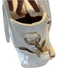 This is like new but does have a small imperfection on the back as seen in photo. The Damsel In Defense Covert Kari Purse Chic Handbag Tote in white is a stylish and practical accessory for women. This large shoulder bag features a solid pattern with silver hardware accents and a white handle/strap color. It has a magnetic and buckle closure, with inner and outer pockets for organization. The faux leather exterior material and lined interior offer durability and protection for your belongings. Additionally, the bag includes a concealment pocket for added security, making it a versatile and fashionable choice for everyday use.