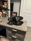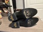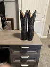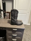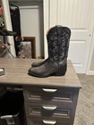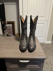 These Dan Post Cowboy Boots are men's gray Western-style boots in size 9.5. Made of leather in the United States, they feature embroidered accents, perfect for casual occasions with a cowboy theme.