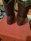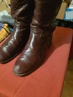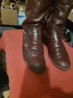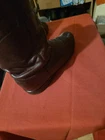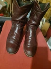 Dan Post Roper boots. Men's 9.5 D. Leather upper is in good shape. Soles are good. May need to be resoled in the future. Boots have been worn and in average condition.
