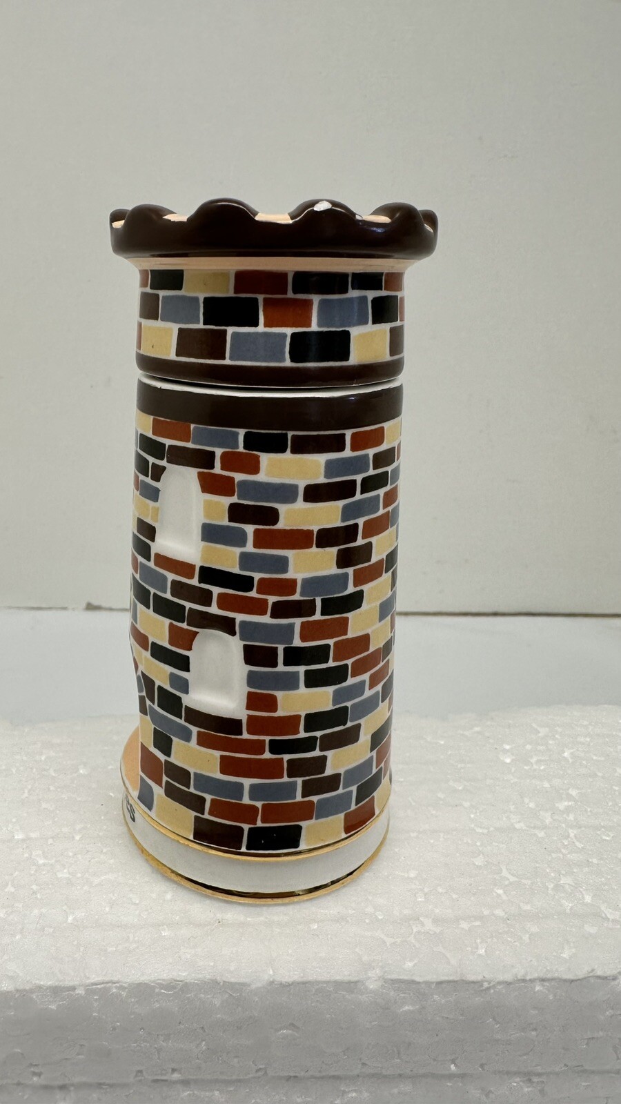 The Danbury Mint Spices of the World Cloves Irish Castle Tower from 1990 is a small porcelain spice figurine standing 4 inches tall. This multicolored item features a castle tower design, signed by the brand, and part of a collection representing spices from around the world. With a 1990s style, it showcases intricate details like the castle subject and measures 2 inches in length and 1.5 inches in width. Perfect for collectors of decorative figurines or culinary-themed items, this unique piece adds charm to any display.