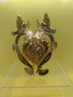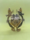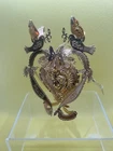 This beautiful Christmas ornament from Danbury Mint is a timeless piece that will add a touch of elegance to your holiday decor. Crafted from brass with a gold plating, it features a heart-shaped pattern that symbolizes peace and love. Measuring 4 inches in height, this ornament is perfect for hanging on a tree or displaying as a part of your ornament collection. The 1997 Dove Heart Brass Gold Plated Christmas Ornament is a vintage piece that is sure to become a cherished addition to your collection. Its metallic features and intricate design make it a unique and special ornament that will be treasured for years to come.