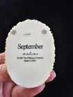This is a Danbury Mint figurine from 1997 featuring the Pillsbury Doughboy character. The figurine is made of cold cast porcelain and measures 3 inches in length. It specifically represents the month of September.