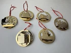 Danbury Mint Fairytale Series Gold Christmas Ornaments 3-D Unique, detailed and Beautiful. Approx. 3.5" round. Jack and the Beanstalk. Humpty Dumpty. Little Red Riding Hood. Little Old Women Who Lived in a Shoe. Little Bo Peep. Little Miss Muffet.