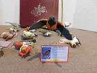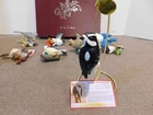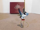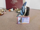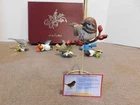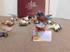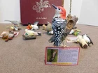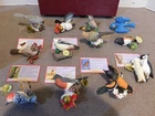 In this set there are 12 birds, and each bird have original name tag. There are 6 birds with cards they are, Baltimore oriole, robin, downy woodpecker, red bellied woodpecker, song sparrow, nuthatch, without cards there is titmouse, towhee, dove, bluebird, hummingbird and chickadee. All with tags and in great condition.