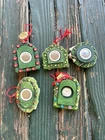 Add some festive cheer to your Christmas tree with this beautiful set of 5 Danbury Mint Songs of Christmas Tree Ornaments. The multicolor ornaments feature a charming Santa Claus, the iconic "Silent Night" song, and delicate jingle bells. Each ornament is expertly crafted and hangs beautifully on your tree. Celebrate the holiday season with these Danbury Mint ornaments that are perfect for any Christmas occasion. Whether you're looking to add to your collection or simply want to decorate your tree with stylish and unique ornaments, this set is sure to impress. Get into the spirit of the season with these beautiful and festive Danbury Mint Songs of Christmas Tree Ornaments. One is missing the magnet