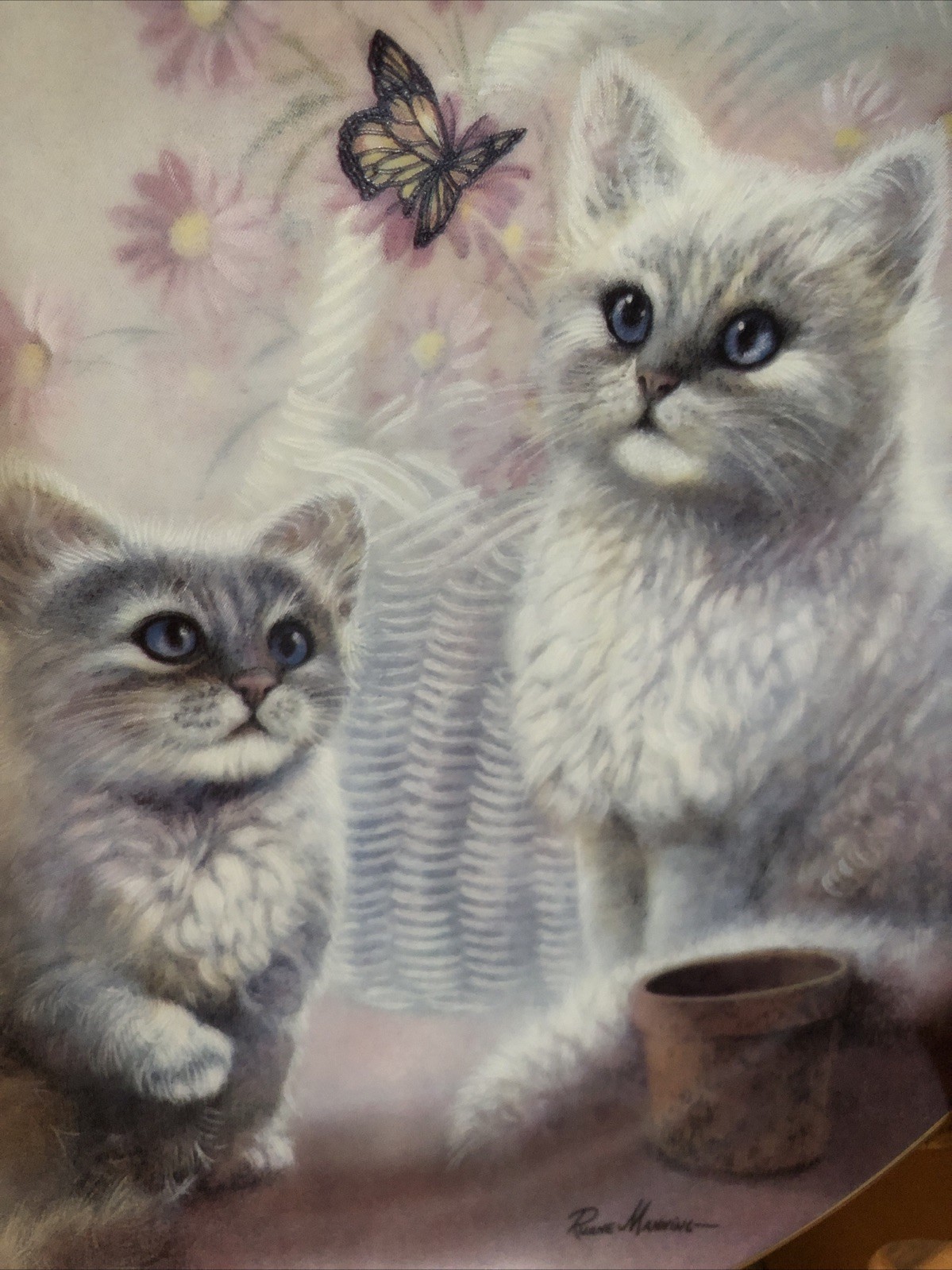 Danbury Mint Vintage 90’s ‘Butterfly Watchers’ Cat Plate Limited Edition Kitsch Butterfly watchers by Ruane Manning from the collection entitled Kitten Cousins. An edition limited to 14 firing days. The Danbury Mint. Plate no B3057. 8 in