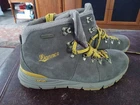 Danner Mountain 600 boots in hazelwood yellow, size 11, featuring a Vibram sole, Megagrip compound, self-adaptive lug, flex lines, and waterproof material. These boots are perfect for various occasions such as activewear, casual, and workwear. The round toe shape, lace-up closure, and ankle shaft style make them comfortable and easy to wear. These boots are made of high-quality leather, synthetic lining material, and foam insole material. They are suitable for all seasons, including winter, summer, fall, and spring. The Danner Trail product line was made in Vietnam and is a great choice for outdoor enthusiasts. EXCELLENT CONDITION