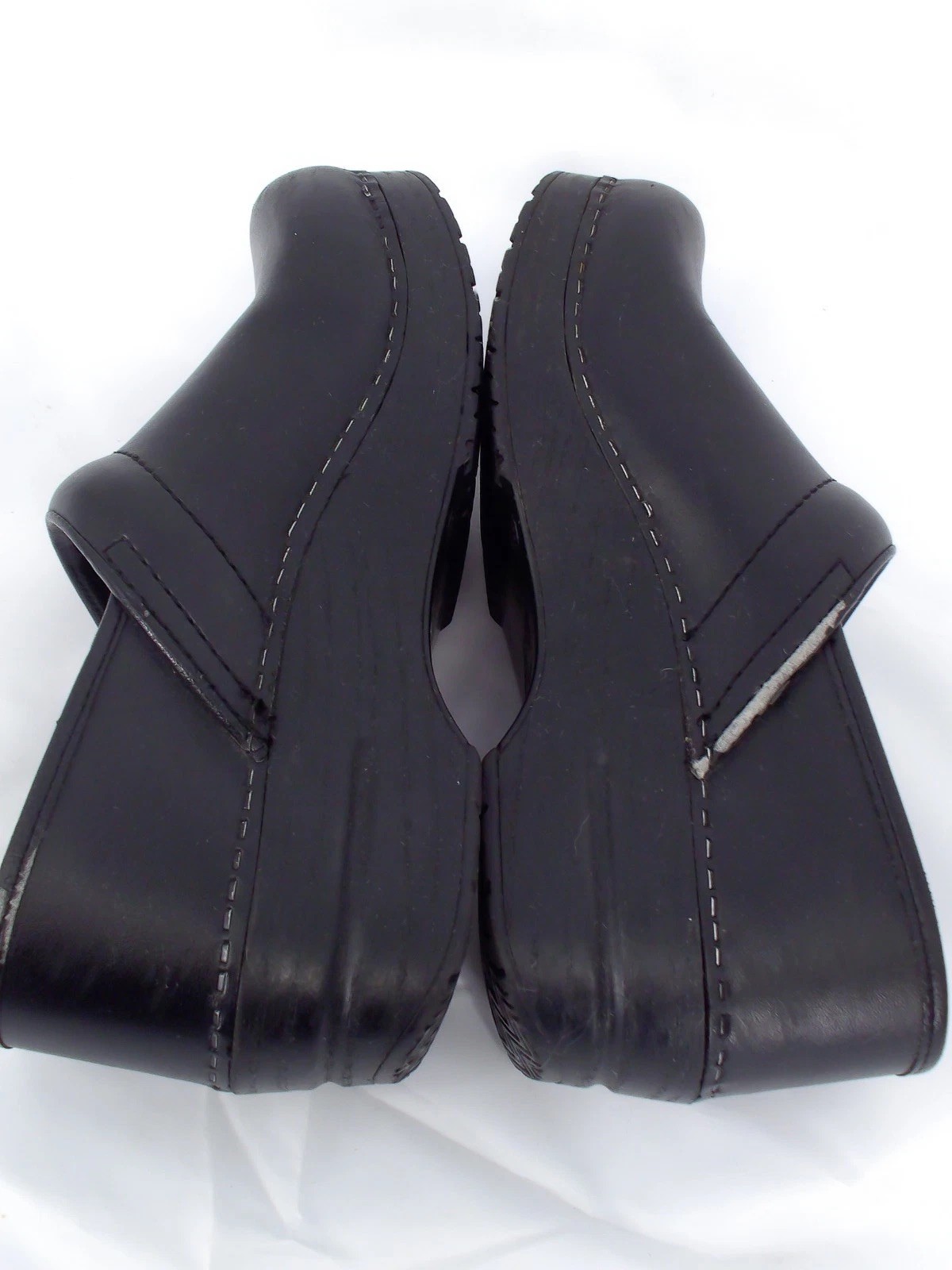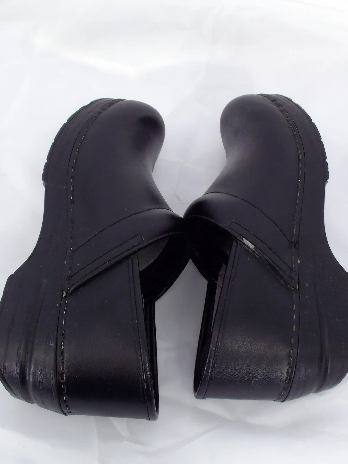 The Dansko Professional Core Women's Black Wide Clogs Flats Shoes in size 7.5 are a stylish and comfortable option for women. Made of leather with a slip-on closure, these shoes feature a solid black color and a wide width (E) for added room. The Dansko brand is known for quality and durability, making these clogs a reliable choice for everyday wear. Designed for comfort and practicality, these shoes are perfect for long hours on foot and are ideal for professionals seeking a sturdy and supportive footwear option.
