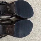 The Dansko Slip-On Clog Sandal in Brown Leather is a stylish and comfortable option for women in US shoe size 9 to 9.5. This versatile sandal features a slip-on closure, mid-height wedge heel, and studded accents for added flair. Designed for various occasions including travel, casual outings, workwear, and business settings, this sandal offers moderate cushioning, moisture-wicking properties, and breathable fabric lining. The rubber outsole provides durability and support for all-day wear, making it a practical and fashionable choice for everyday use. I just replaced the soles - brand new.