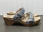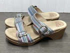 These Dansko Sophie sandals are perfect for the woman who loves both comfort and style. They are slip-on with adjustable buckle straps for closure and the perfect fit. Made of leather and featured in a multicolor striped pattern with a faux wood exterior. They are suitable for travel and casual wear. Available in a women’s EU size 39. They are in great condition with no damage. Add these stylish sandals to your shoe collection today! FAST SHIPPING!!