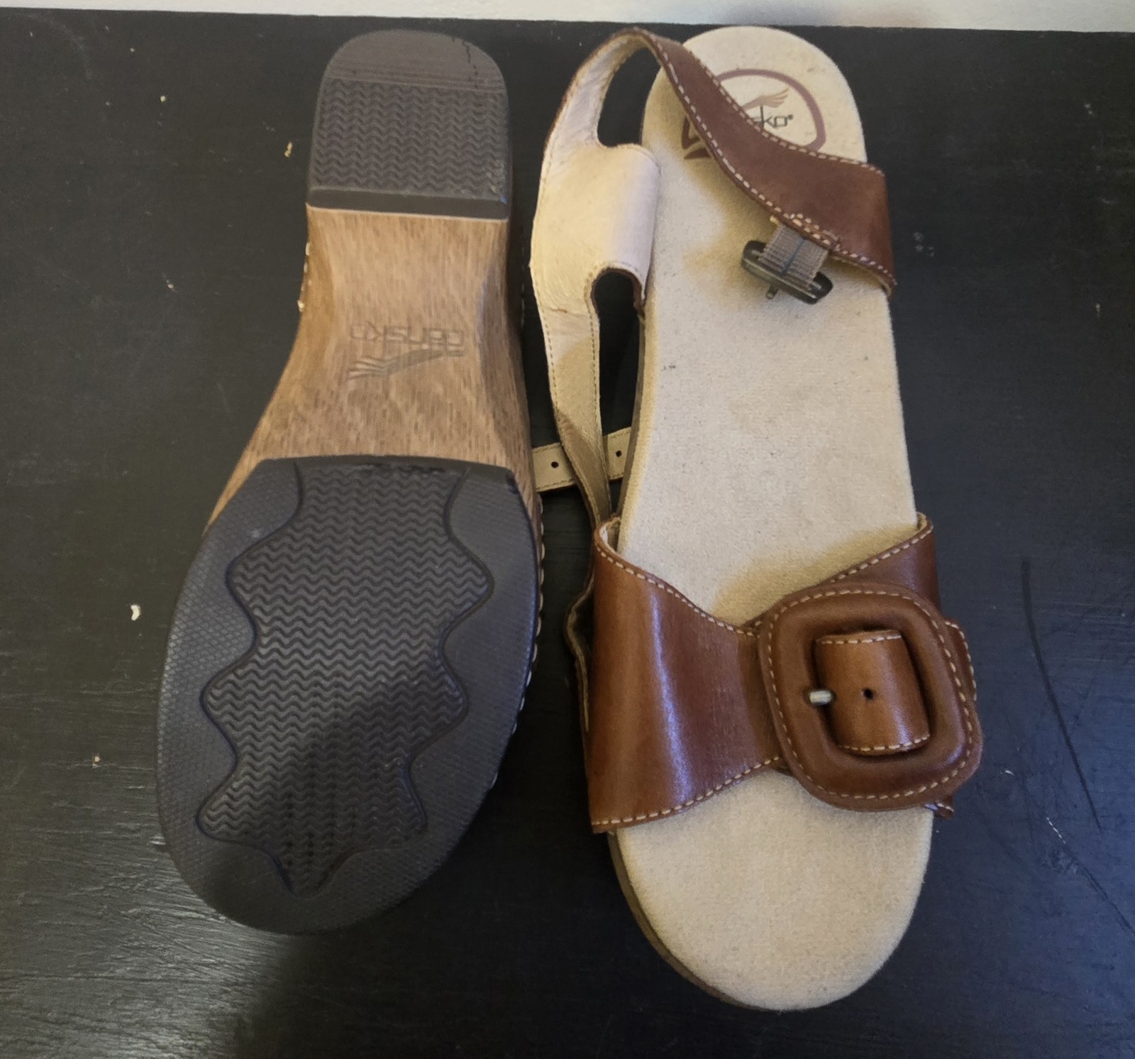 These Dansko Women's Brown Leather sandals feature a 2" heel and adjustable straps, making them perfect for casual occasions in the summer, fall, and spring. The strappy design with a hook and loop closure offers comfort and a moderate level of cushioning. Made with synthetic outsole material and leather lining, these sandals are crafted by the brand Dansko and are designed to provide support and style for women in US shoe sizes 7.5 to 8. The classic brown color and solid pattern add a versatile touch to any outfit. womens shoes sandals dansko brown leather nurse buckle retro funky comfortable
