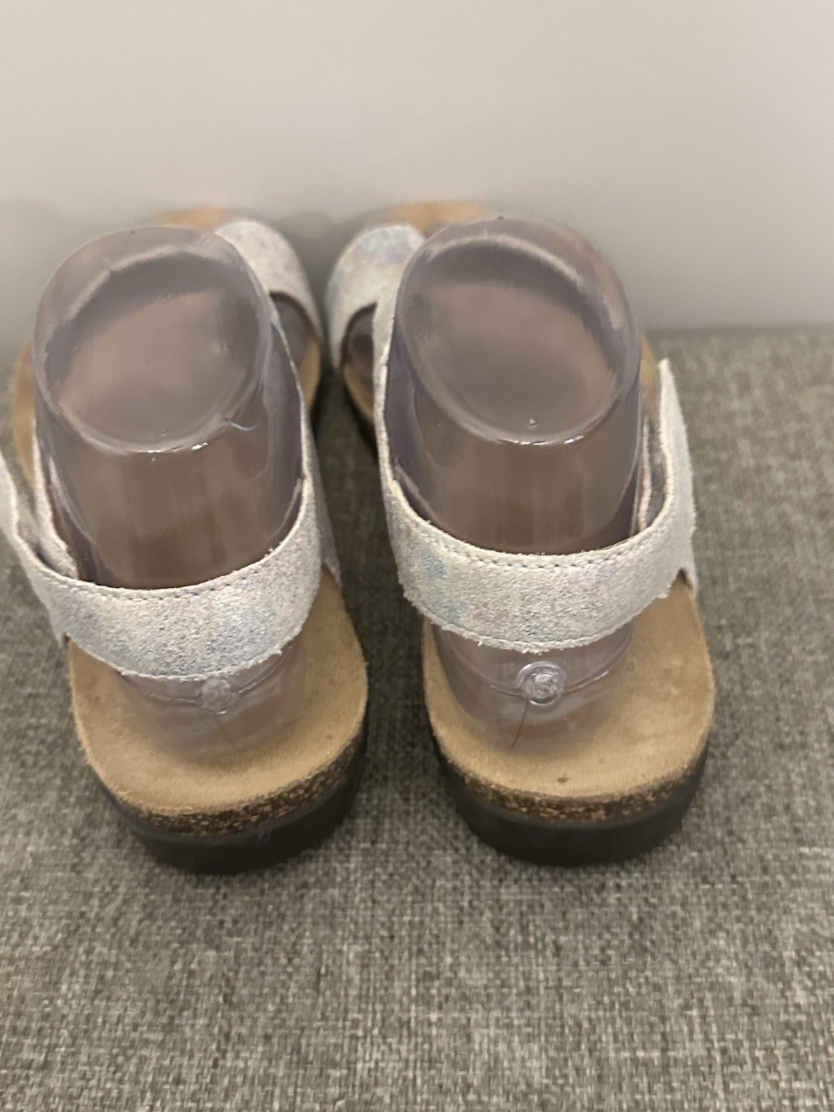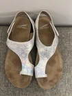 The Dansko Women’s Reece Metallic Slingback Sandals in size 38 (UK 7.5) are a stylish and comfortable option for women looking for a versatile shoe. With a low heel and hook & loop closure, these sandals are perfect for everyday wear. The silver metallic color and strap accents add a touch of flair, while the leather upper material ensures durability and quality. The adjustable strap provides a customized fit, making these sandals both fashionable and functional. Ideal for women who value both style and comfort in their footwear. Preowned Good Condition