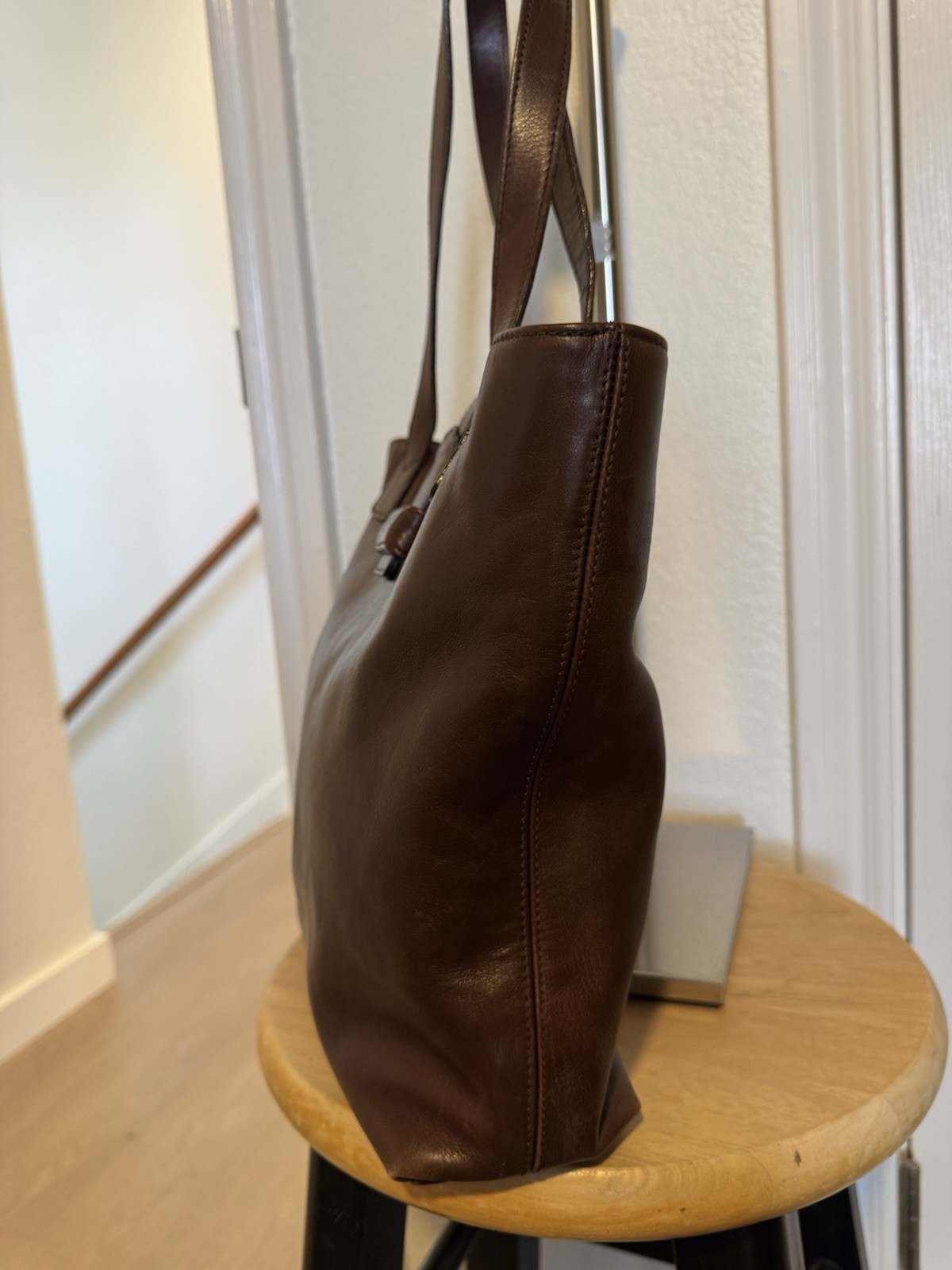 The Dark Brown Chanel Caviar Leather Tote is a stylish and luxurious handbag designed for the fashion-forward woman. Made with high-quality leather and featuring a classic zip closure, this medium-sized tote is perfect for everyday use. The quilted exterior in a solid brown color, accented with brown leather handles, exudes elegance and sophistication. This designer piece from Chanel's Caviar collection is a must-have for anyone seeking a timeless and chic accessory to elevate their outfit.