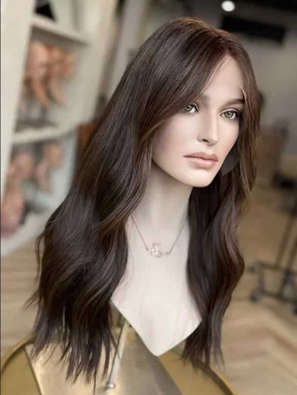 Dark Ash Brown Balayage Long Straight 13x4 Lace Front Human Hair Wig for Women