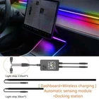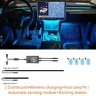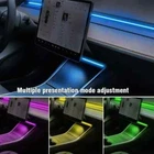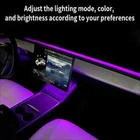 1.The passenger glove box USB interface is used for power supply, and the product comes with one USB plug, which does not occupy the original car USB plug. 2.After the vehicle is turned off, the ambient light will automatically turn off after 60 seconds without the need for manual shutdown. 3.Note: The footwell light is not RGB colored Specifications: 1. Specially fit for: Tesla Model 3/Y. 2. Item Type: Atmosphere Lamp. 3. Material: Opticle Fiber+LED. 4. Installation location: Center Console Dashboard + Wireless Charging + Foot lamp. 5. Voltage: USB 5V. 6. Color: RGB Colors. 7. Power supply: Connect the USB interface inside the passenger glove box. 8. APP:Scan the QR code on the back of the host, download the app, connect to Bluetooth, and control the lighting mode on the app. Features: -Breathe Mode -Gradient Mode -Cycle Mode -Strobe Mode -Music rhythm Mode -Flow Mode -Running water Mode -Mobile phone APP control The Light mode: 1) Active sound effects: The LED under the car's brightness system is equipped with sound sensors that allow the LED lights synchronized with musical rhythm. The LED light music strip follows the rhythm and adjusts the flicker to adapt to the strength of the sound. 2) musical decoration. The Kit designed to be simple, however, also provides elegance inside the car when driving at night or enjoying music. And because it has sound sensor, the car low brightness system is synchronized with the rhythm of the music. 3) Sleep mode - Led light will have sleep mode. This mode can automatically change the dark brightness to provide a good atmosphere of sleep. 4) Brightness Color temperature adjustment: The LED is equipped with the brightness color temperature adjustment mode. When you feel that the light is dark, you can use this mode to change the brightness.