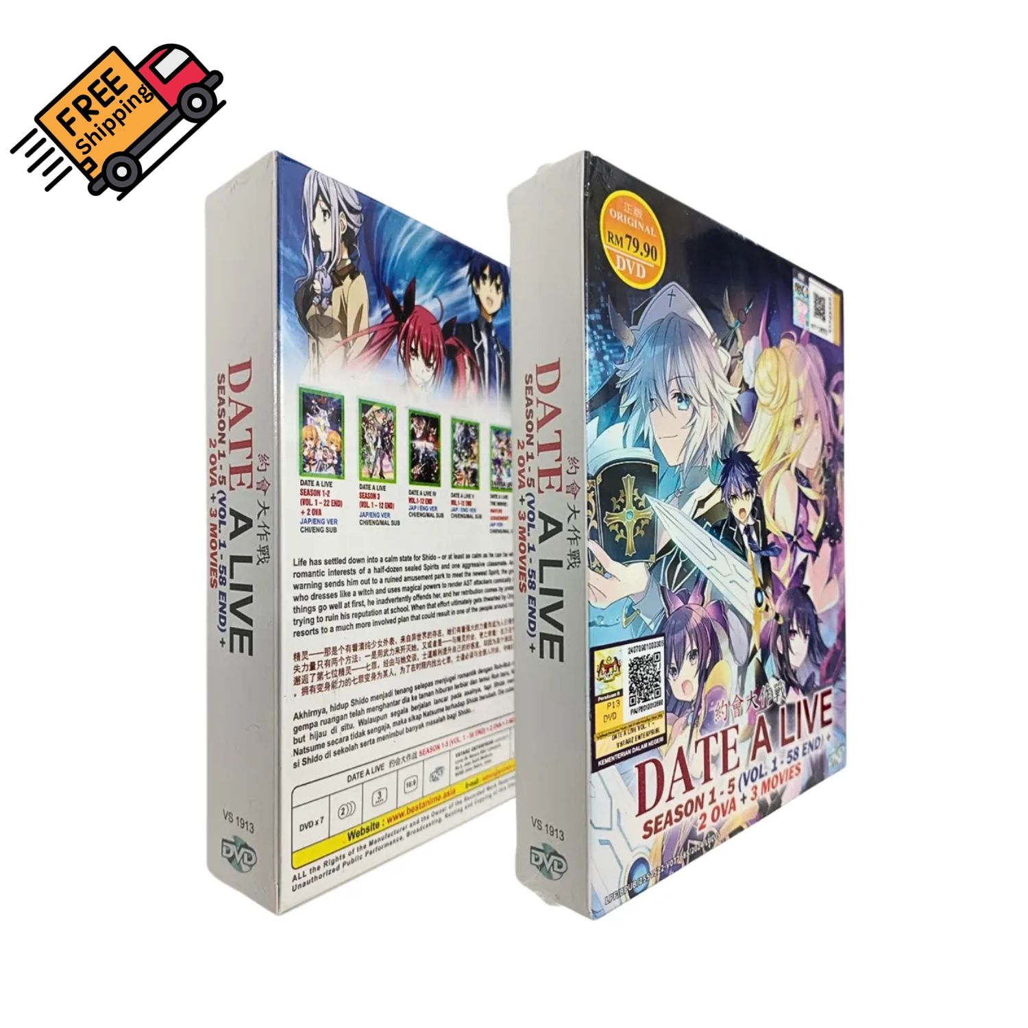 This complete Date A Live collection is a must-have for any fan! It includes all five seasons, two OVAs, and three movies, all English dubbed and region-free. The picture quality is great, and having both English and Japanese audio options is a nice bonus. The subtitles make it accessible, and the packaging keeps everything organized. Perfect for rewatching or catching up on the series—highly recommended for anime lovers!