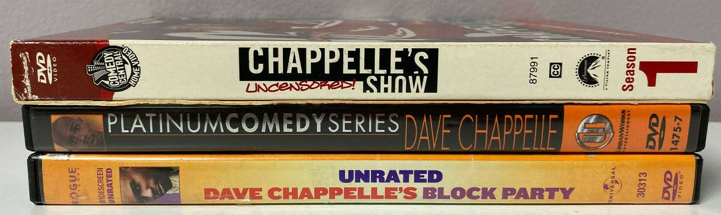LOT OF 3 DAVE CHAPPELLE DVDS - CHAPPELLE'S SHOW SEASON ONE UNCENSORED - KILLIN' THEM SOFTLY - BLOCK PARTY Good Condition DVD Discs Shipping USPS is the service used for shipping. We ship to all 50 states and APO addresses. International Buyers Import duties, taxes, and charges (typically collected upon delivery or pickup) are the buyer's responsibility and are not included in the item price or shipping charges. Please check with your country's customs office prior to bidding/buying to determine what these additional cost will be. Terms If you have any questions or need information, please feel free to email us via the link above. Please don't forget to check out all my auctions. Good Luck!