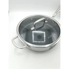 David Burke Geo Clad series, 4.5 quart, 11 inch wide, deep frying pan with vented lid. Tri-Ply stainless steel. Patented laser etched geometric pattern. Ultra tough, stainless steel utensil safe. Easy to clean, PFOA free non stick surface. Thick aluminum core between stainless steel for even heat distribution. Handles are riveted for comfort and control. Oven safe to 500 degrees (lid to 350 degrees). Suitable for gas, ceramic, electric, halogen and induction cook tops. Shop with confidence—my products are carefully inspected and packaged to ensure quality. Fast, reliable shipping within 24 hours and I am available to assist you with any questions. Every purchase helps me continue to provide great products at unbeatable value—thank you for supporting my small business!