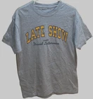 This vintage 90s Champion T-Shirt features a solid gray color, short sleeves, and a crew neckline. It is made of cotton knit fabric and has a regular fit. The shirt pays homage to the television personality David Letterman and his late-night show on NBC. The size is Medium and it is a men's t-shirt. Vintage 90s Champion Late Show with David Letterman Double Stitched T-Shirt *100% Cotton *Screen-printed *Color: Gray Size: Adult M Approximately Measurements: *Armpit to Armpit 19" *Shoulder to Hemline 28" *Shoulder to Shoulder 18.5 Condition: Pre-owned.