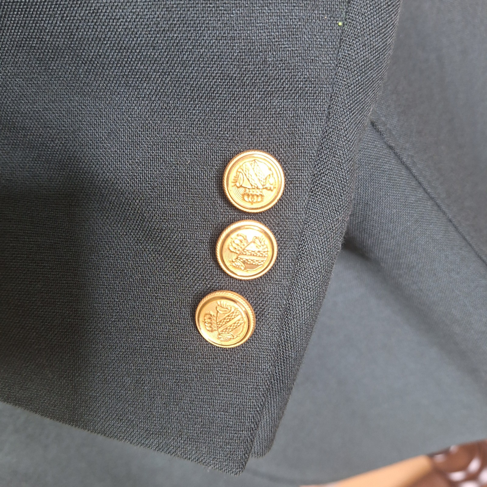 David Taylor Blazer Mens 48L Green with Gold Buttons Single Vented Quality used condition. Please check out the measurements before buying to ensure a perfect fit. Shirt Size on Label 48L Shoulder- Hem 33.00'' Shoulder- Shoulder 21.00'' Shoulder- Wrist 26.50'' Armpit- Armpit 25.00'' Top button 24.00'' Everything ships within a day. Spot cleaned according to manufacturer's recommendations. Has a chance of wrinkling in the mail. Feel free to message me with any questions. Thank you very much. 10/15/2025