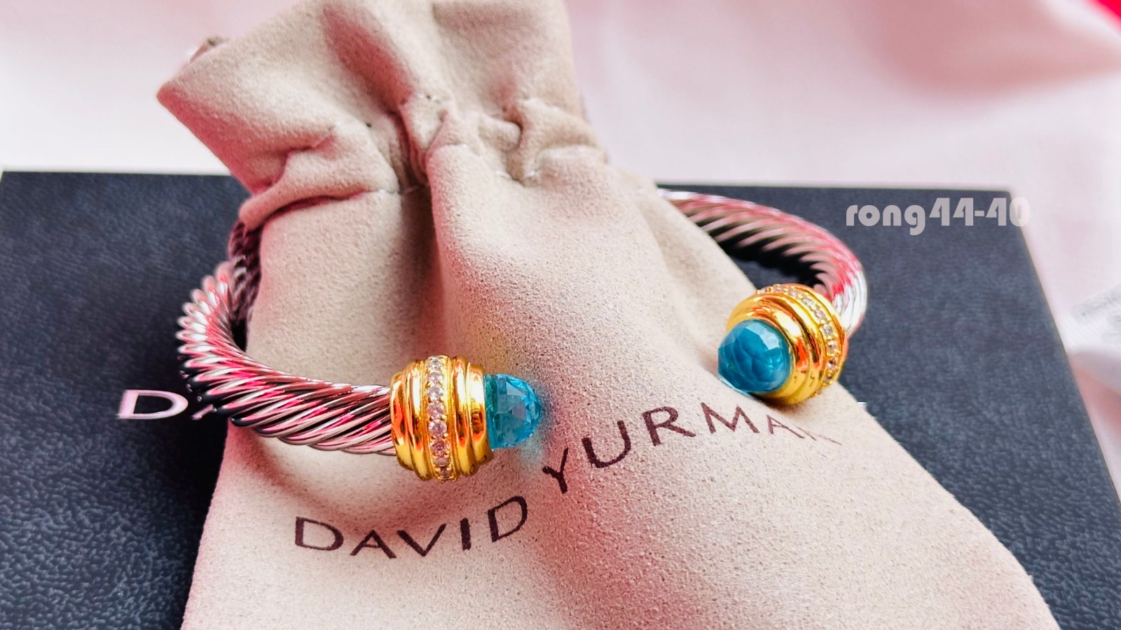 David Yurman 925 silver 7MM Blue diamond bracelet, size M 6-7 inches In Excellent Condition.Come with DY Pouch and box